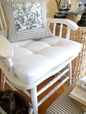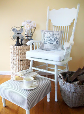 A hard decision! I think my first choice would be the white chair because I like the fresh cottage look about it. The way you have finished off all these chairs with cushions, pillow, stools etc. is just so charming! Do you hand paint your chairs or spray them with a compressor sprayer? (Hand painting all those chair parts would take a lot of time!)