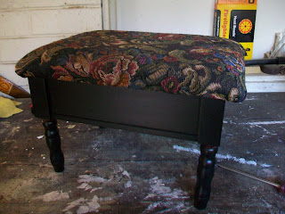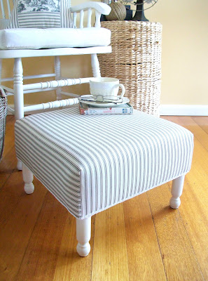 Again, the footstool was made from scratch and the feet are actually cut down old side table legs.