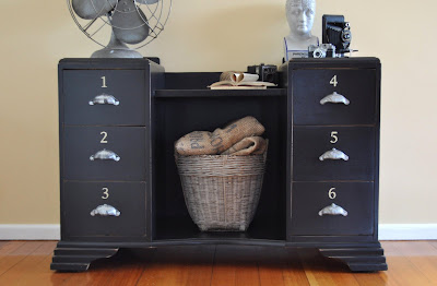 I remember seeing this beauty on one of the link parties! I intended to click and visit, but somehow it got away from me….just gorgeous! Love the update with the numbers on the drawers!