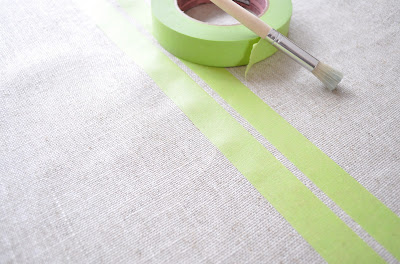 There was enough remaining linen to make a cushion for my bed too. I decided to paint some subtle grainsack inspired stripes on it.