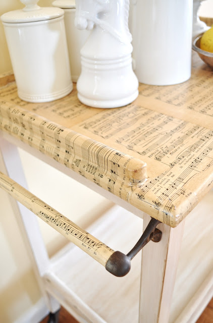 The sheet music adds the perfect touch to this cart. Fabulous!