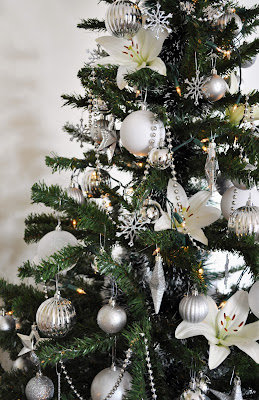 This year I used some snowy green garlands to bulk up its central sparseness then smothered it in baubles, silver stars, sparkly snowflakes and pretty lilies to create a glittering ‘White Christmas’ of sorts for our hot Aussie summer.